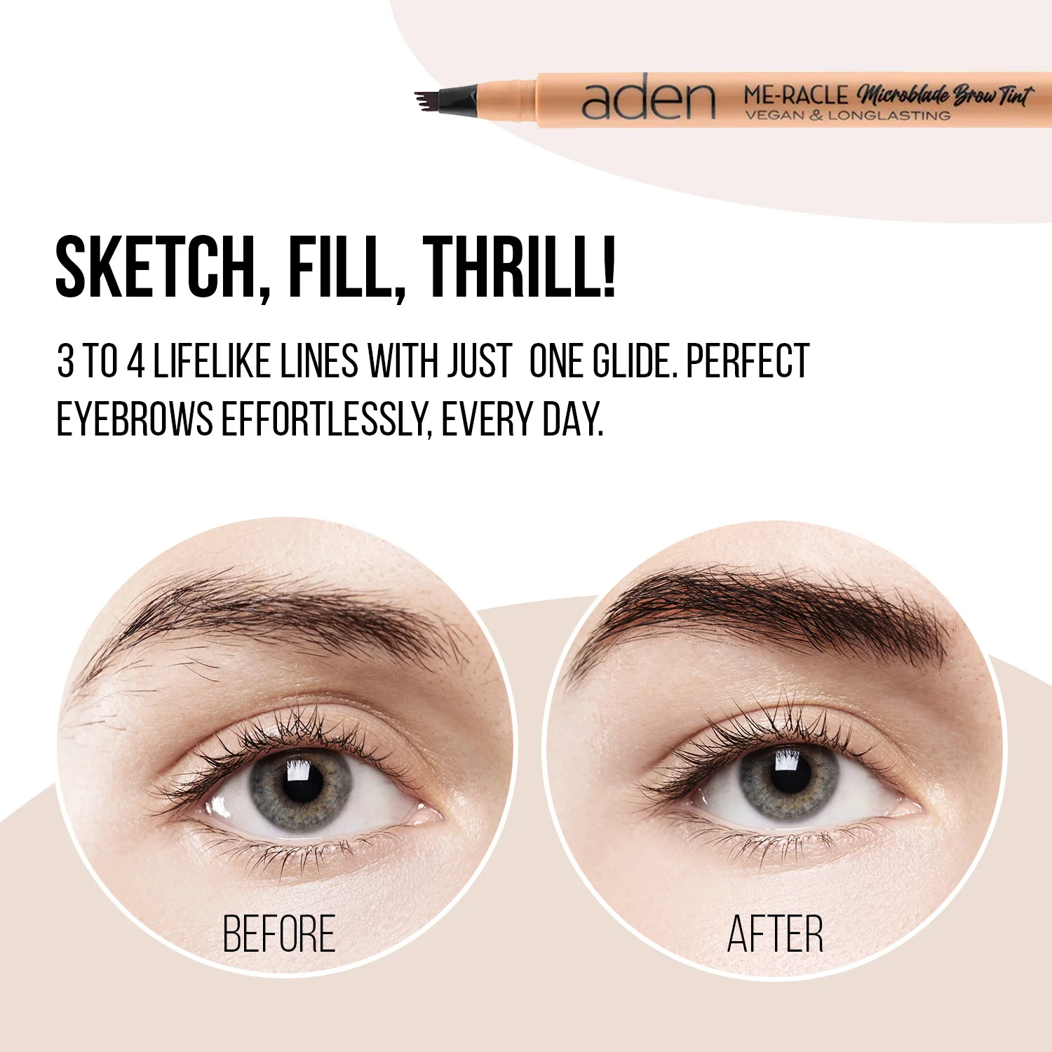 Με μεγάλη ευκολία, μπορείτε να σχεδιάσετε γρήγορα τα φρύδια σας χρησιμοποιώντας το στυλό φρυδιών Aden Cosmetics ME-RACLE Microblade, με το νέο απλικατέρ που μοιάζει με χτένα.